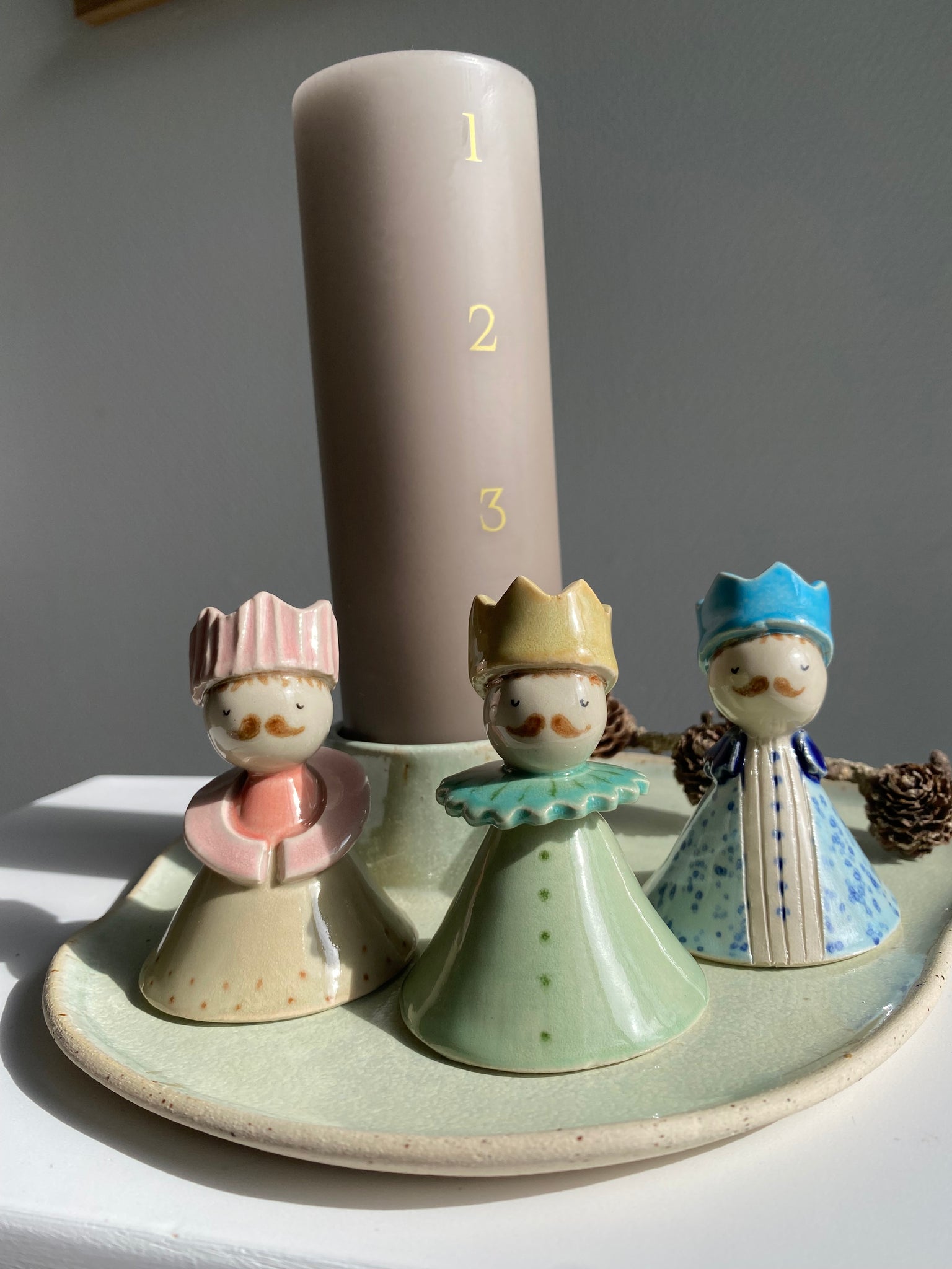 "De tre vise mænd" håndformet og håndmalet i stentøjsler 🌲
