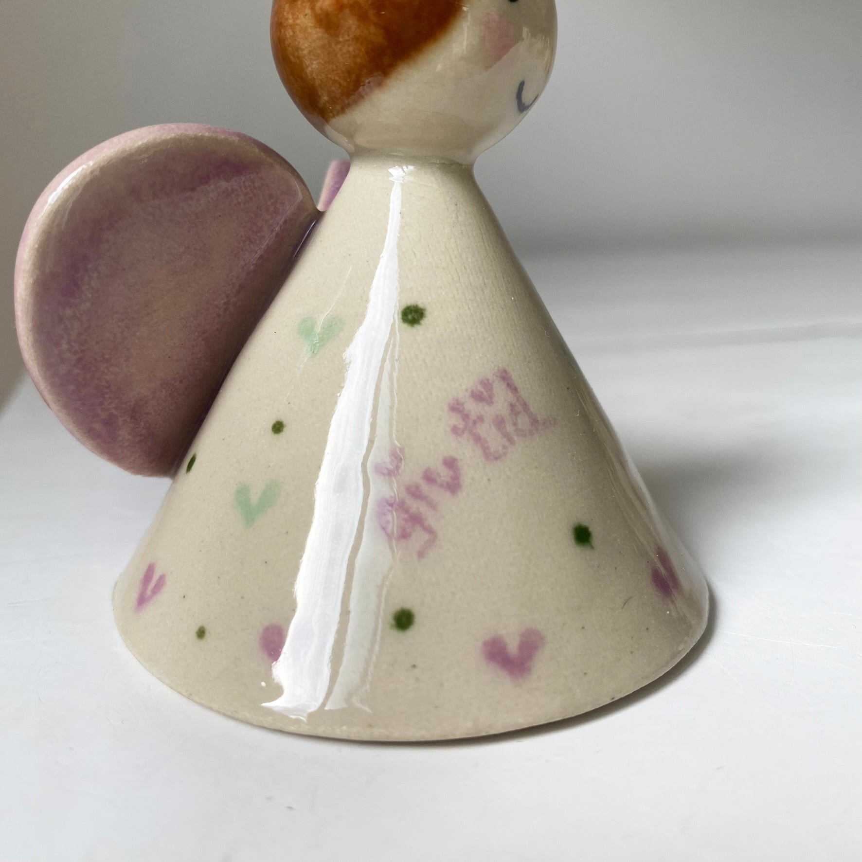 Håndformet og håndmalet engel i stentøjsler / STOR