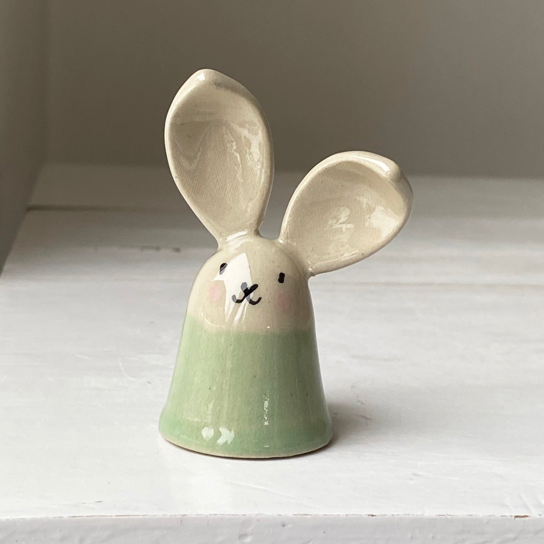 Lille påskehare, håndformet og håndmalet af os i vores værksted i Strib 💛