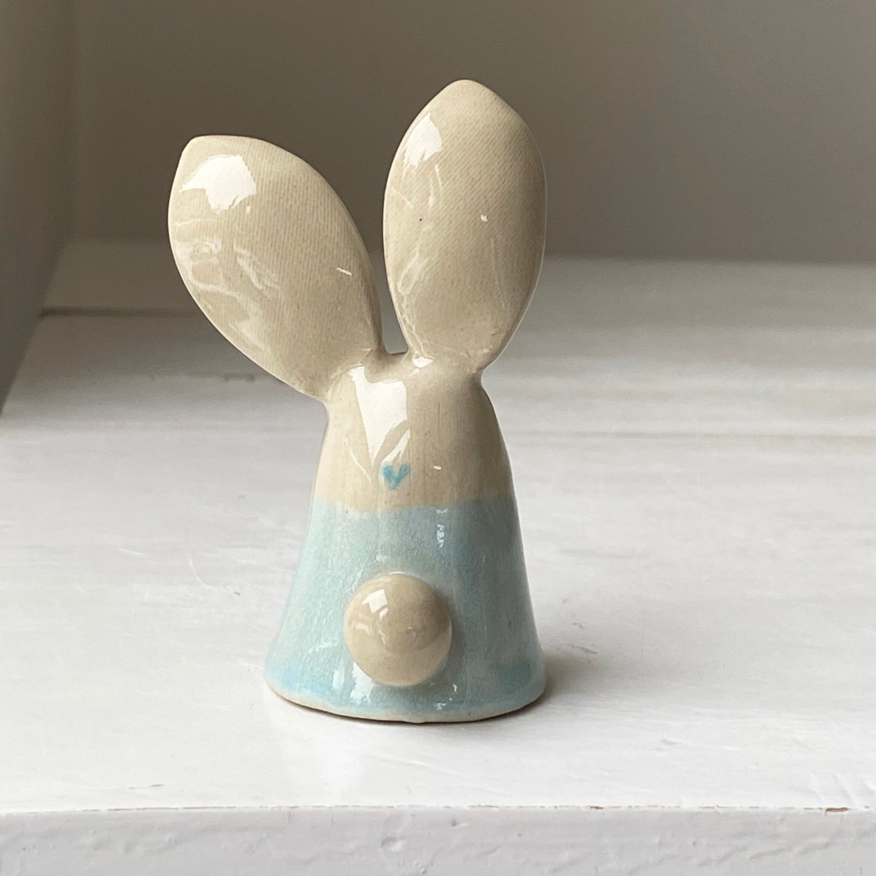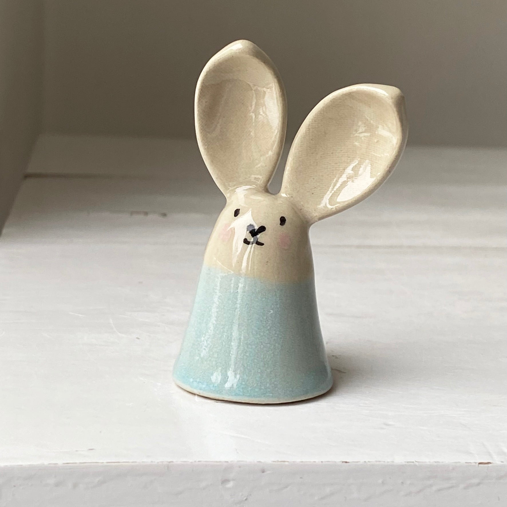 Lille påskehare, håndformet og håndmalet af os i vores værksted i Strib  💛