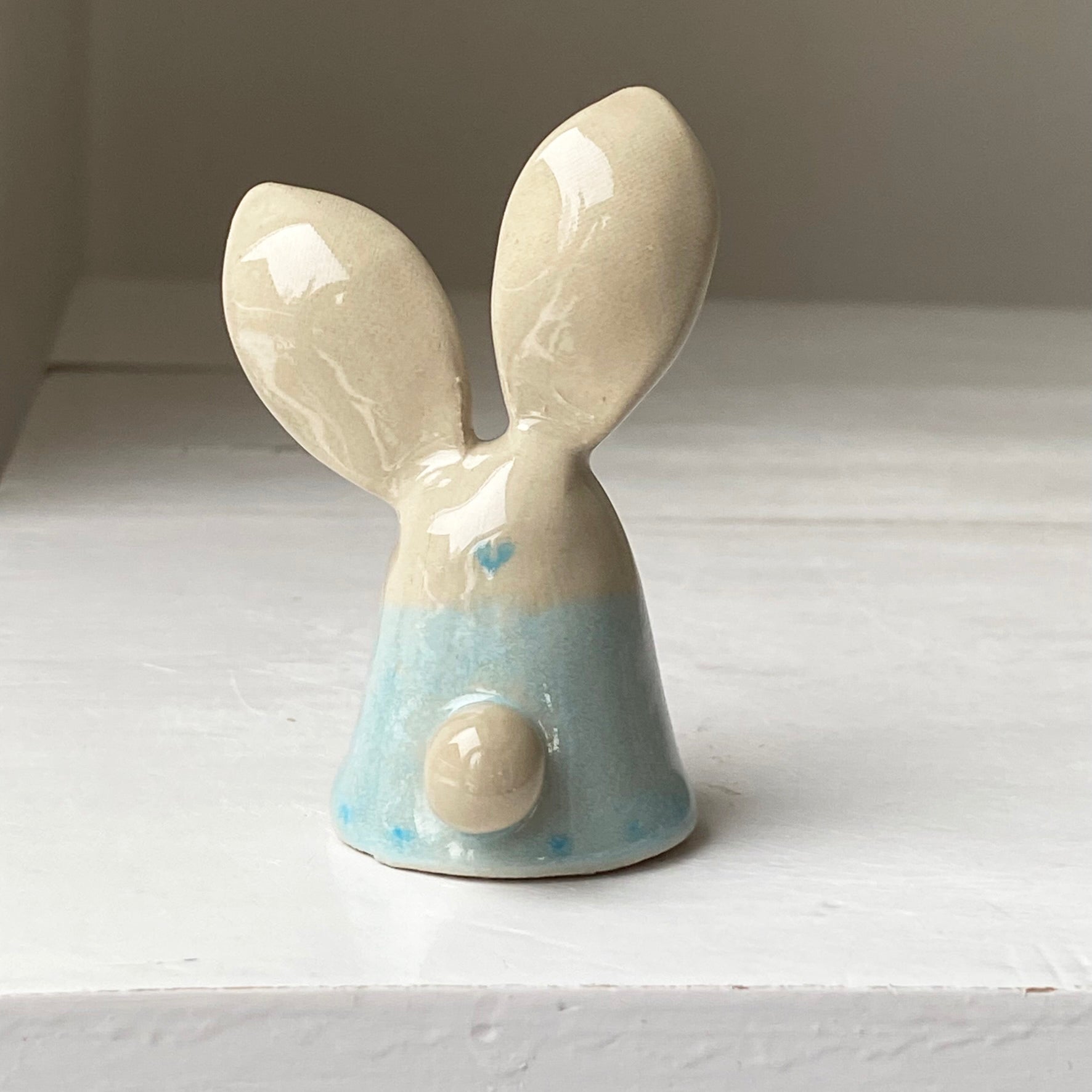 Lille påskehare, håndformet og håndmalet af os i vores værksted i Strib  💛